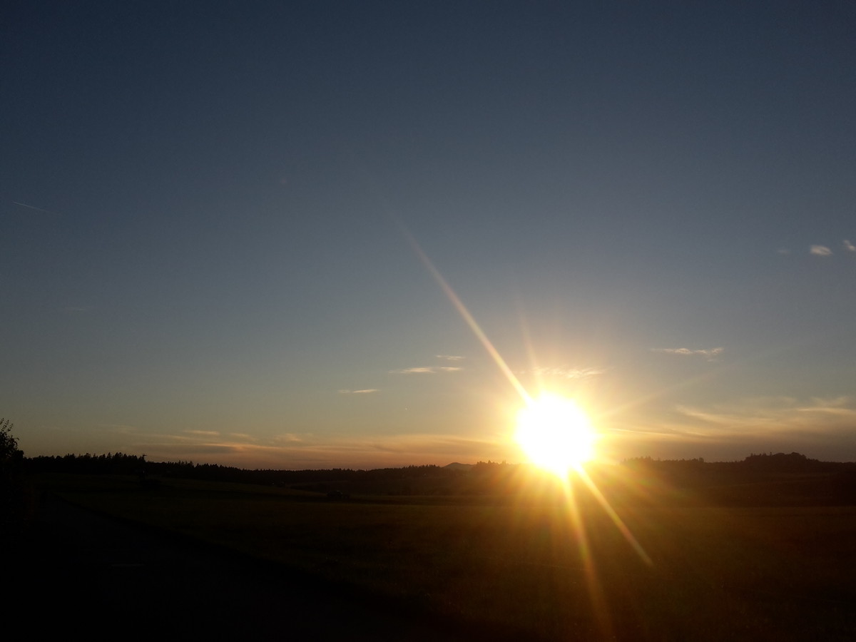 Donnerstag lief ich abends um kurz nach sieben los. Richtig Lust hatte ich zwar nicht, wollte mir aber die Beine noch ein bißchen vertreten und beschloss, dass die Bayerham-Runde dafür ausreicht. Dass die dann länger gedauert hat, als geplant, war aber nicht meine Schuld, sondern die des tollen Sonnenunterganges, den ich am höchsten Punkt der Strecke einfach ein wenig genießen musste, bevor ich der Bahn entlang wieder zurück nach Hause getrabt bin.